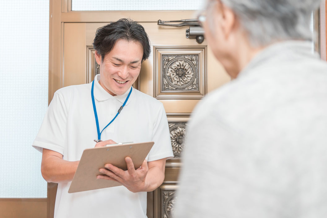介護福祉士やホームヘルパーがお住まいに訪問して、自分や家族だけでは日常生活を営むことが難しい方に入浴、排泄、食事等の介護、掃除や洗濯などの日常生活の支援を行うサービスです。できるだけ住み慣れた場所で生活できるよう支援します。